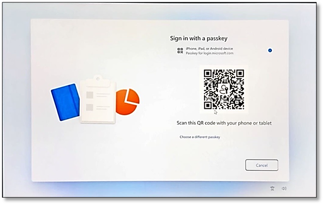 A. If you have a passkey on your mobile device, on the Sign in with a passkey screen, scan the QR code with your phone or tablet and then follow the instructions to complete authentication.