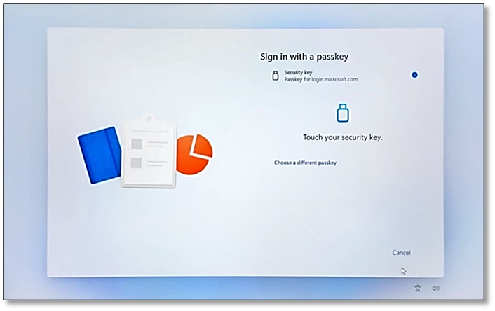 B. If you have a Security key, on the Sign in with a passkey screen, insert your security key into the USB port or Touch your security key and follow the instructions to complete authentication.